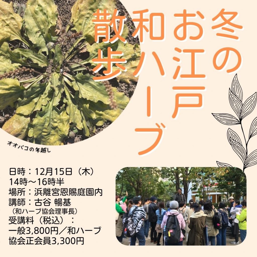 ▶受講料:一般3,800円(税込)/和ハーブ協会正会員3,300円(税込)…浜離宮恩賜庭園入園料を含む