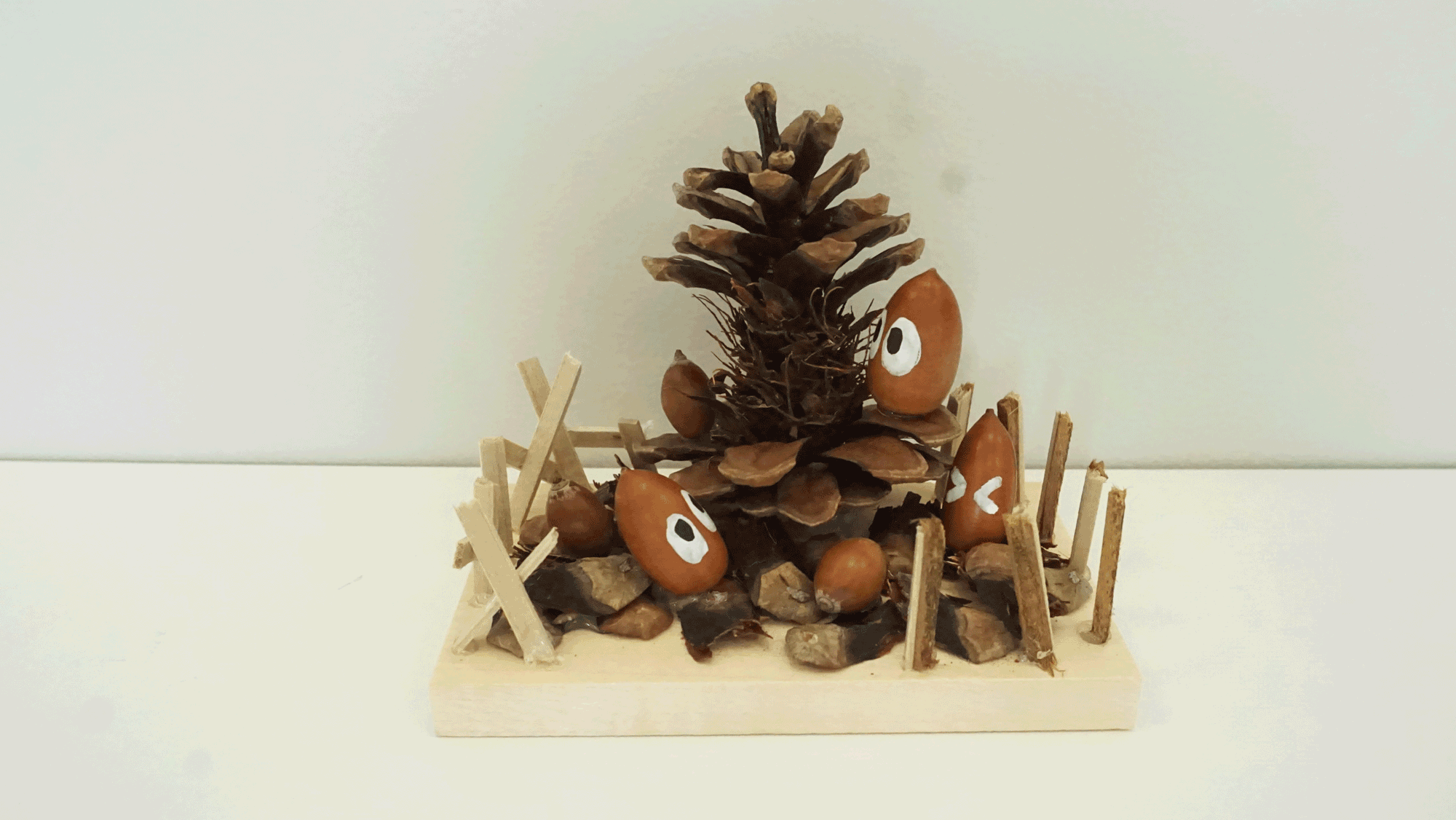 どんぐりや松ぼっくりなどの木の実を使い、自由なテーマで作品作りをしましょう。作った作品はお持ち帰りいただけます。