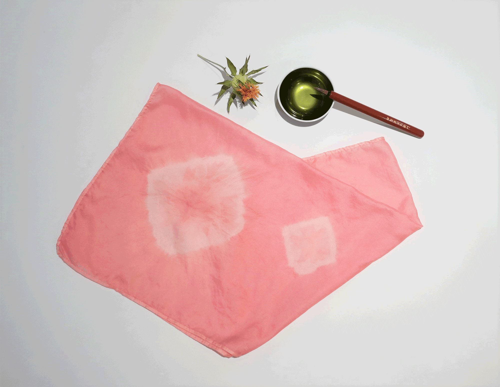 江戸時代創業の紅屋から、紅の歴史や文化について学びます。紅花から抽出した染液を使い、紅染めの体験をします。