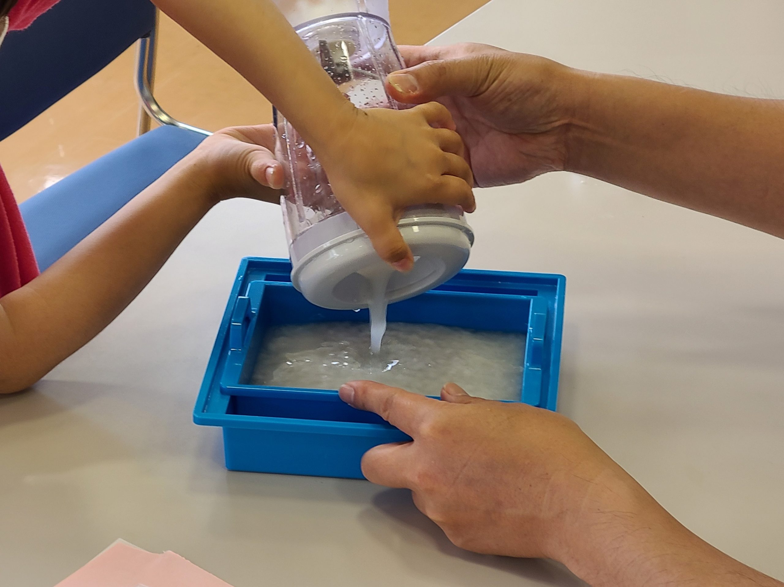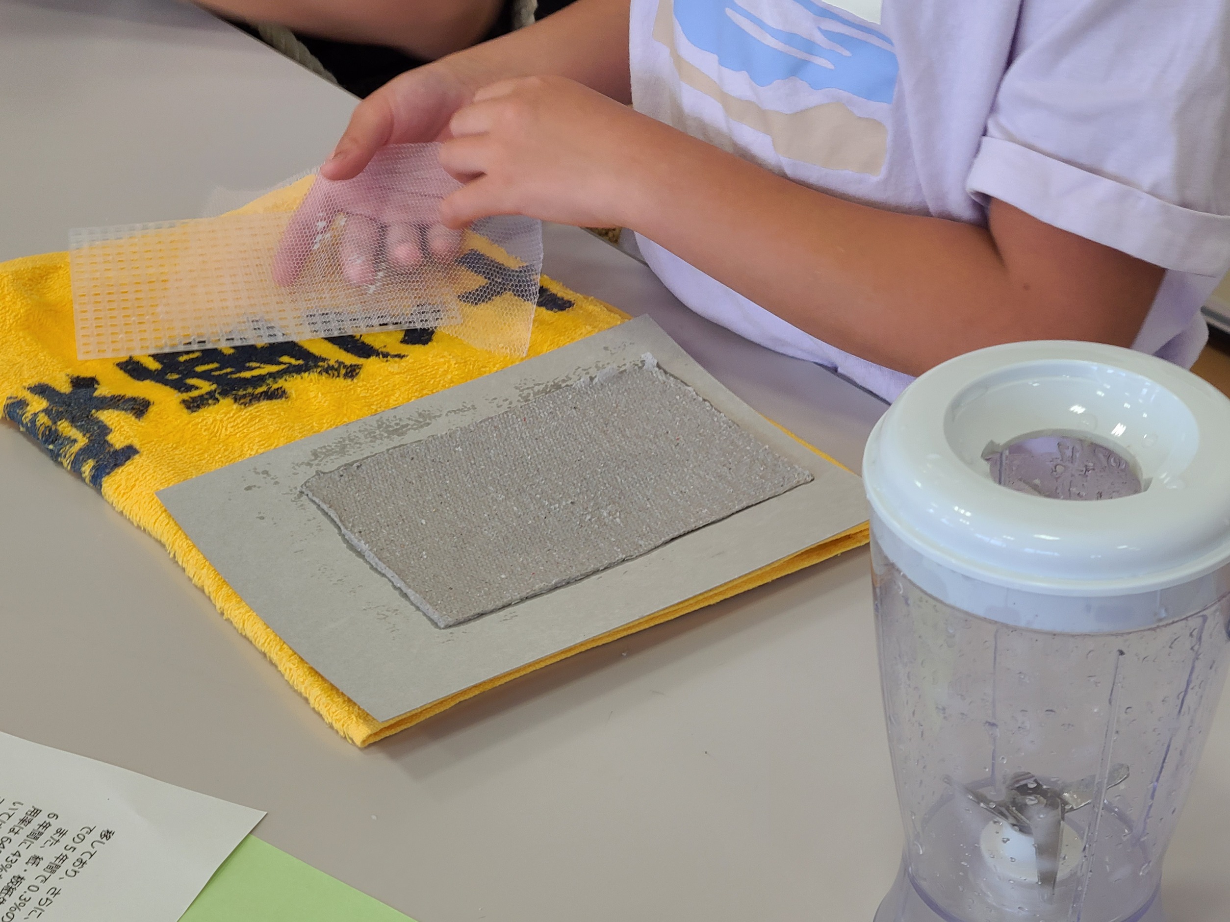 使用済みのコピー用紙を使って、オリジナルの再生はがきを作ります。クイズなどを通じて紙のリサイクルについて学びます。
