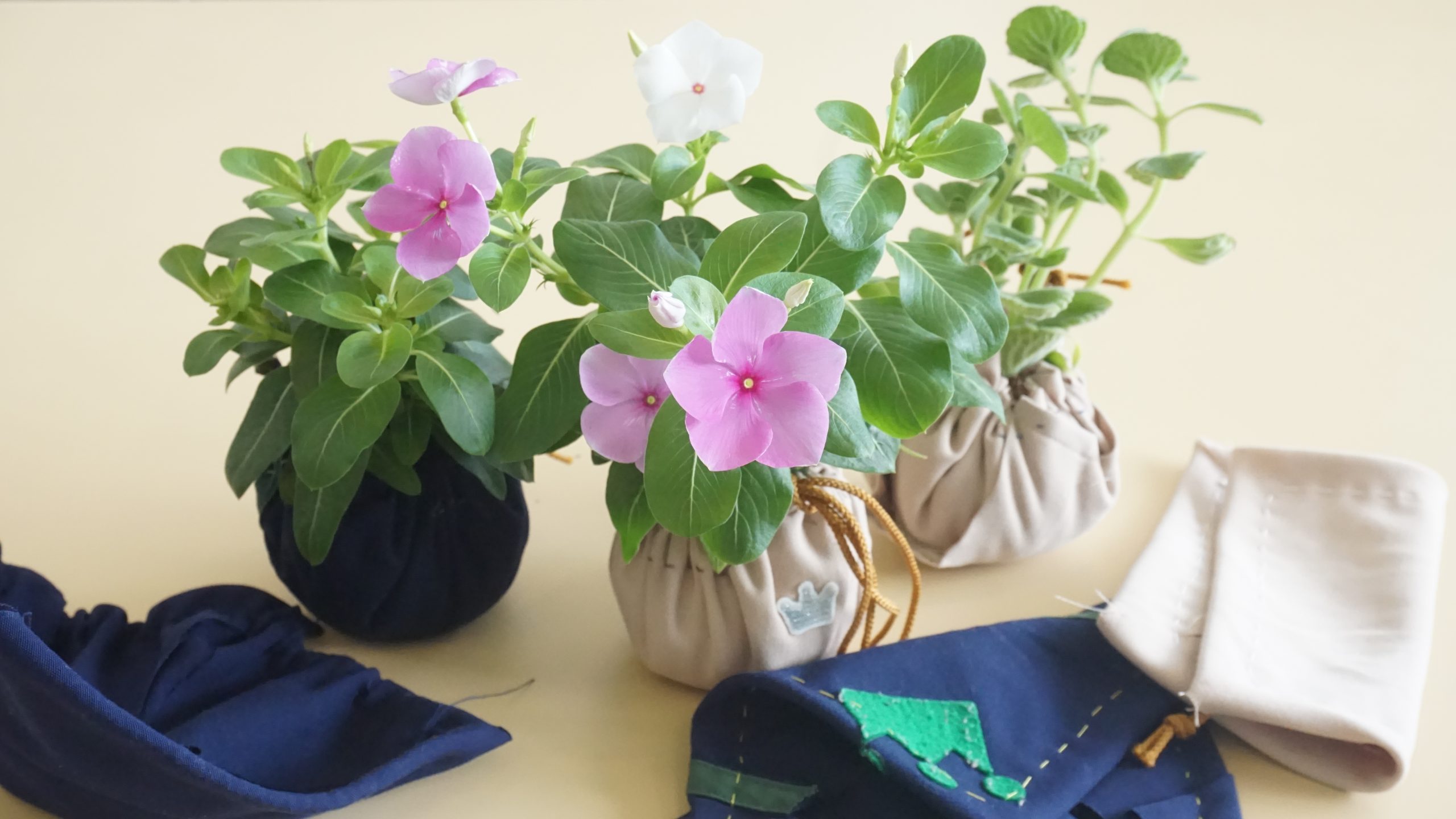 室内で育てられる土を使わない草花『花活布(はなかっぷ)』を作ります。アップサイクルやSDGsについて学びましょう。 ※花活布(はなかっぷ)作りで使用する素材の一部は、中央区標準服等リユース事業「りゆぽ~と」の素材を使用します。