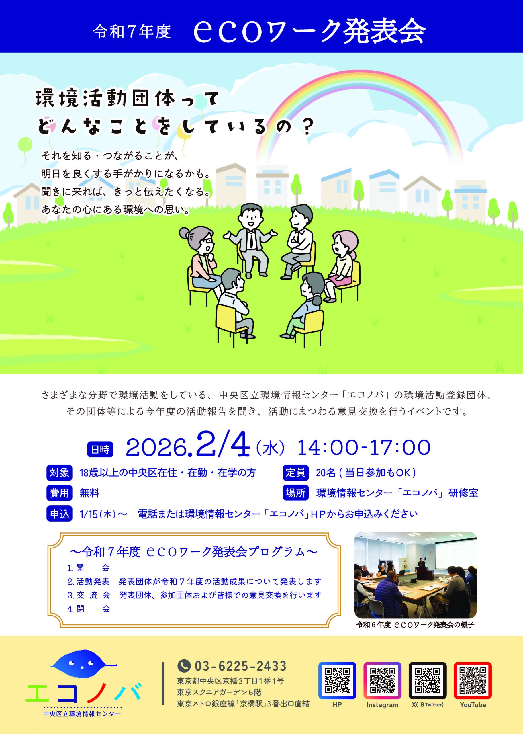 環境情報センターに登録し、さまざまな分野で活動している環境活動登録団体等による今年度の活動発表と意見交換会を行います。