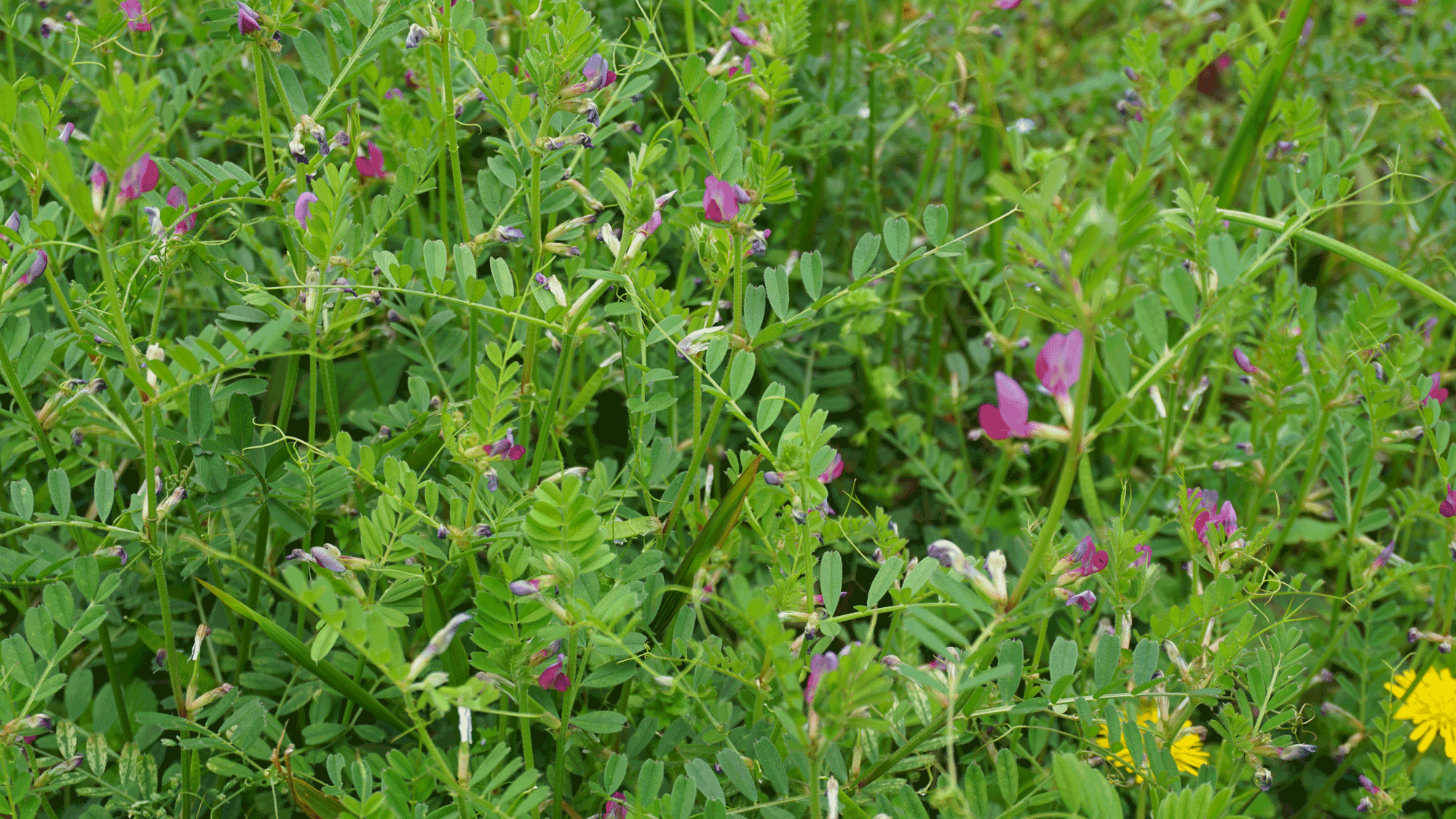 足元の芝生にもさまざまな植物が生えています。