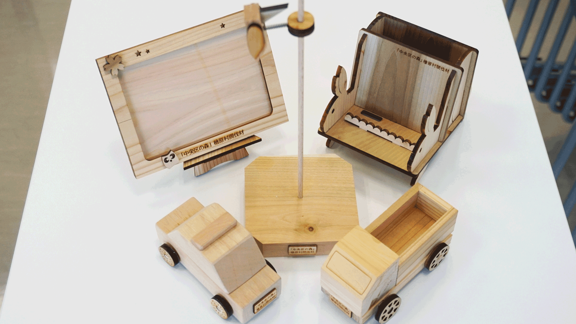「中央区の森」の間伐材で作られた工作キットで工作をしませんか?きつつきやパトカーなど、
