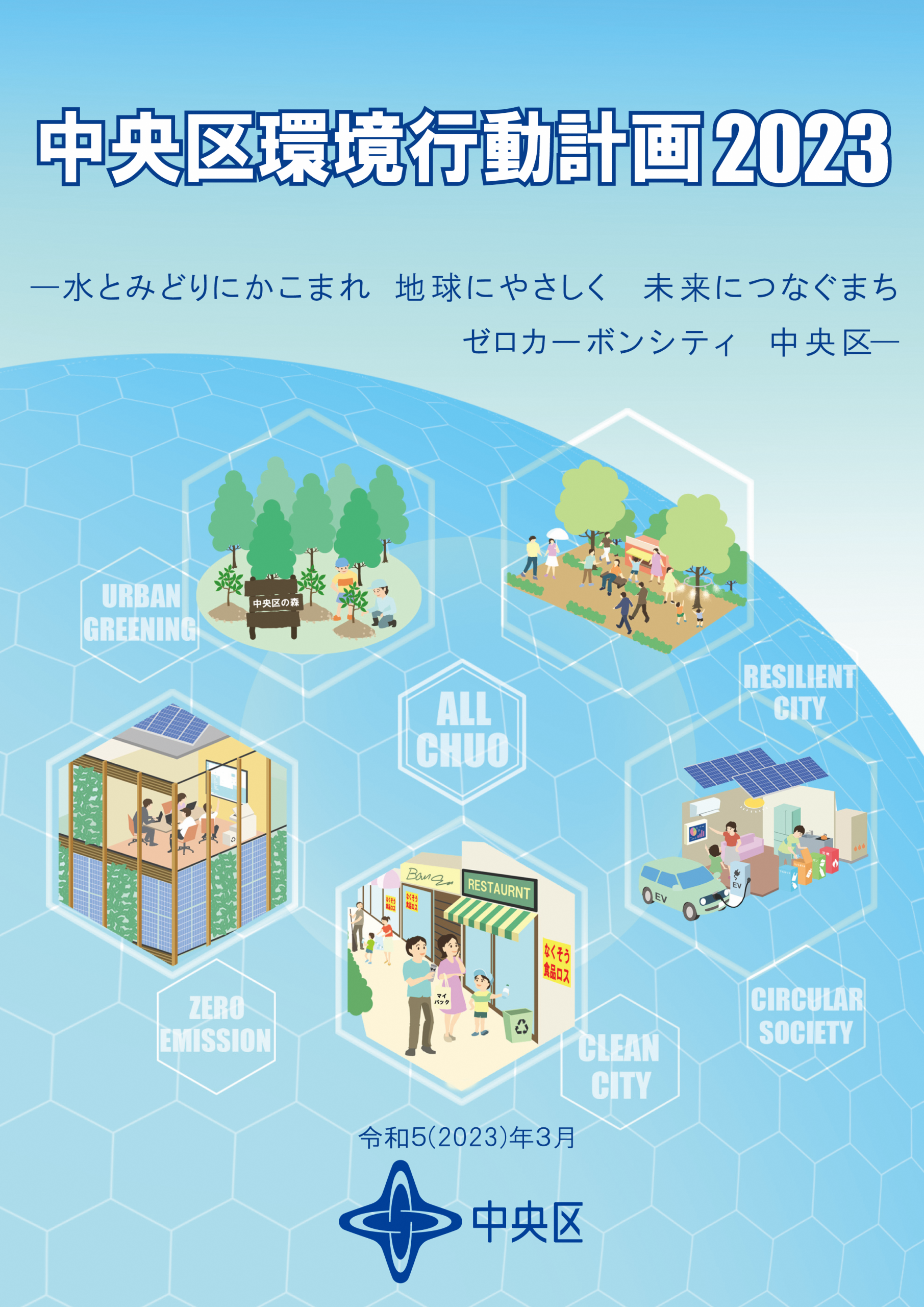中央区では、環境施策を総合的かつ計画的に推進するとともに、「ゼロカーボンシティ中央区宣言」を踏まえた脱炭素社会の実現に向け、「中央区環境行動計画2023」を策定しました。 本計画は、環境基本法に基づき策定する計画であり、2050年までに二酸化炭素排出量実質ゼロを目指します。 また、地球温暖化対策の推進に関する法律に基づく「地方公共団体実行計画(区域施策編)」および気候変動適応法に基づく「地域気候変動適応計画」も含んでおり、「中央区基本構想」及び「中央区基本計画」を環境施策の側面から補完するものです。